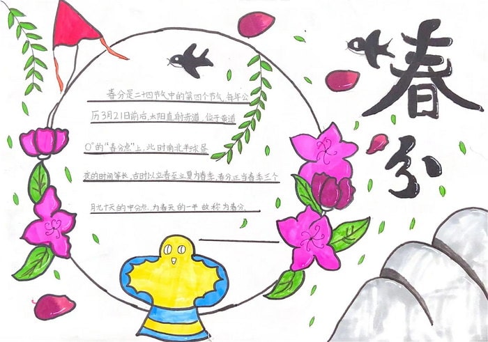 二十四节气是中国古代劳动人民长期经验的积累和智慧的结晶,二十四节气的命名反应了季节、物候现象及气候变化。是不可多得的文化遗产。下面小编整理《春分手抄报》为主题的手抄报供大家参考学习。