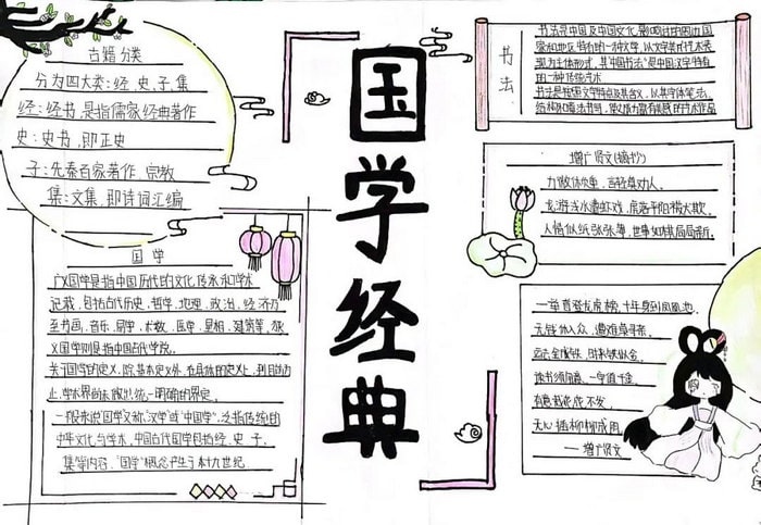 “经典”是一个民族博大智慧和美好情感的结晶,所载为至理常道,透射着人文的光芒,其价值历久而弥新,任何一个文化系统皆有其永恒不朽的经典作为源头。下面小编整理《国学经典手抄报》为主题的手抄报供大家参考学习。