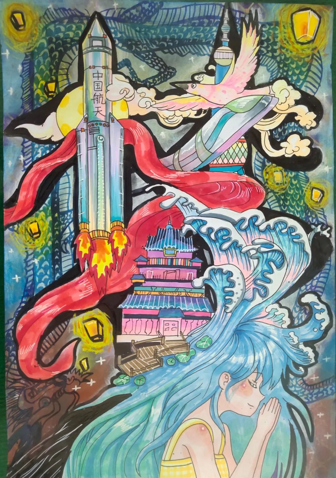 荣小队员们用画笔描绘家国情怀, 展示祖国繁荣发展的辉煌成就,对未来展开大胆的想象和创作,展现了新时代少年的精神面貌。