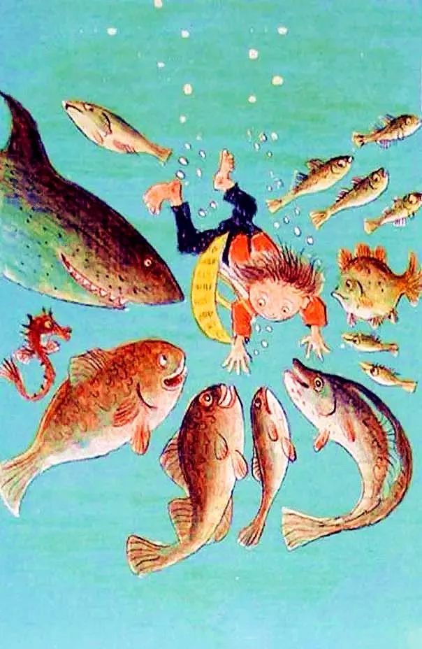 水里有好多鱼和别的生物。