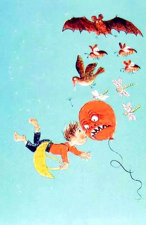 和一些五月金龟子,一些蜻蜓,一些飞行的种子,还有一个气球。