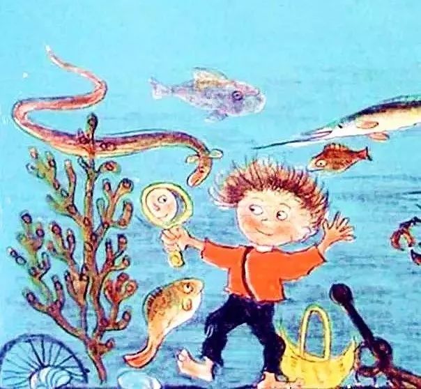 他把这个小月亮放进篮子里,然后急匆匆地钻出水面。