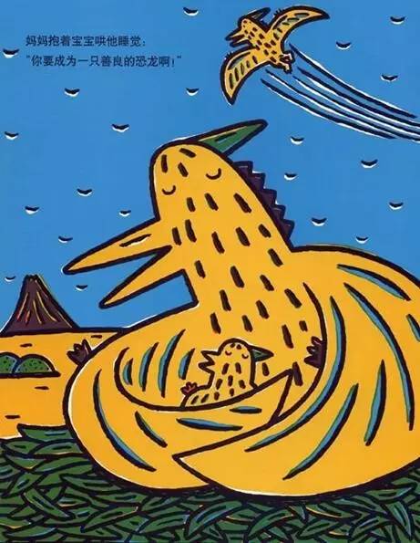 妈妈抱着宝宝哄他睡觉:“你要成为一只善良的恐龙啊!”
