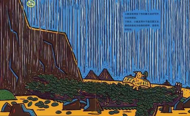 下雨天,小翼龙用叶子盖住霸王龙。