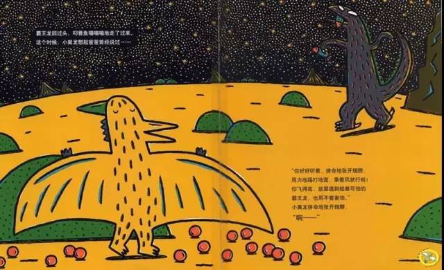 “你好好听着,拼命地张开翅膀,用力踢打地面,乘着风就行啦!你飞得高,就算遇到粗暴的霸王龙,也不用着害怕。”