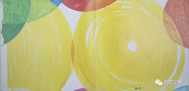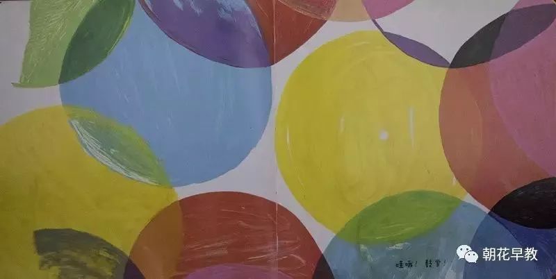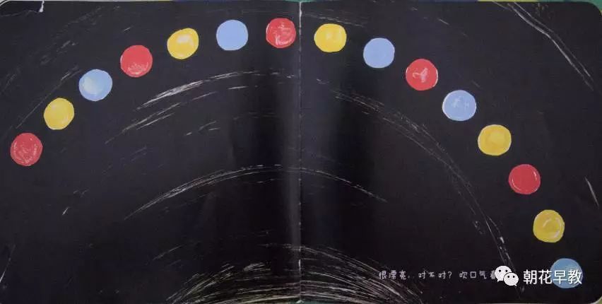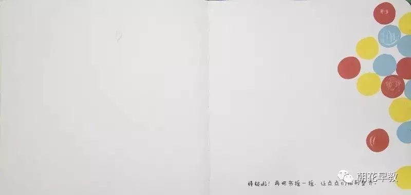 “按一下会变多,摸一摸会变颜色,摇一摇就会到处乱跑,吹一吹就会越来越远,拍拍手就会越变越大”,作者很巧妙的利用翻页和视觉的错觉,像变魔术似的不停地变化着这些点点,而这些不断送来的“奇迹”,孩子们可以在自己小手的参与下“变”出来,可想而知,对孩子来说,这是一个多么奇妙和快乐的过程,而且还有收获的惊喜。