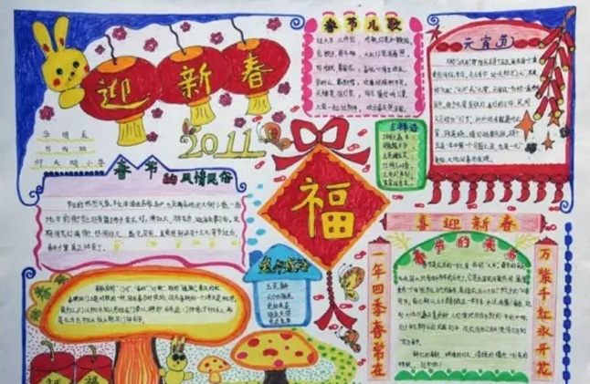 [手抄报]2024龙年春节手抄报版面设计图片 主要绘画工具 铅笔:2B或HB自动铅笔 水彩笔:12色或24色水彩笔 勾线笔:樱花记号笔、1.0针管笔、0.4针管笔 上色:60色或80色马克笔动漫套装 主要绘画元素 本款
