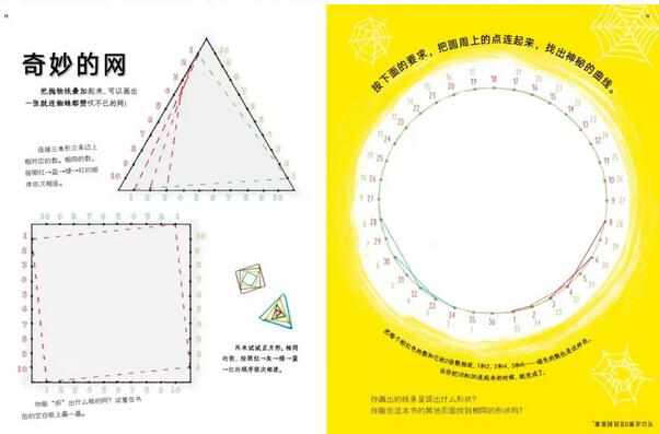 只要按照步骤操作,你可以画出奇妙的数学图案和几何图形,看到金字塔形或螺旋形从数列中显现出来,设计好看又有趣的镶嵌图案,创作出酷炫的错觉图、有趣的迷你动画,研究身体内的骨骼结构,近距离观察昆虫,设计出自己的星座,明白颜色如何欺骗大脑,学会制作纸蜻蜓和活动骨架……数不完的好玩有趣的事情等待着你。