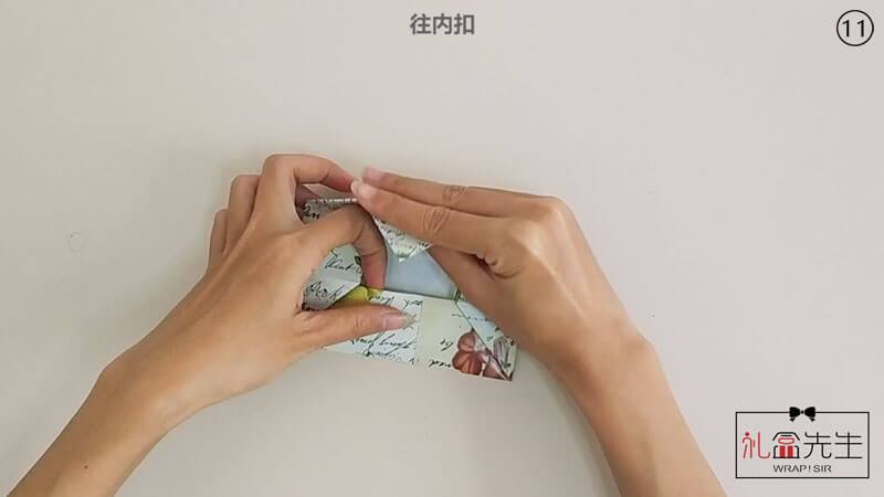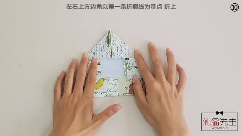 10. 左右上方边角以第一条折痕线为基点 折上↓