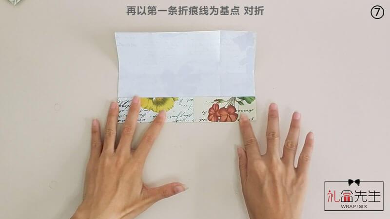 7. 再以第一条折痕线为基点 对折↓