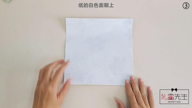 3. 纸的白色面朝上↓