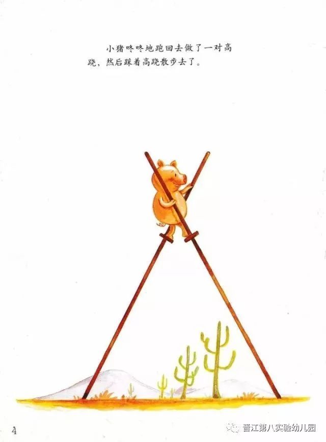 小猪咚咚地跑回去做了一对高跷,然后踩着高跷散步去了。
