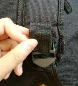3、将背带调整至自己舒服的长度,不要太长,让书包背面整体贴和后背,底部齐腰,有腰带的要调整好长度扣好,可把60%以上的重量转移到腰胯部,背起书包会轻松很多。